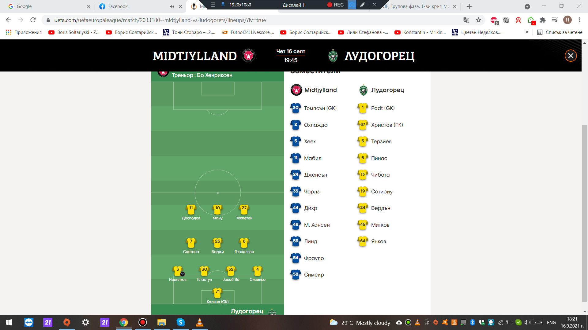 728 ViewsСъставът на „Лудогорец“ срещу „Мидтиланд“ Мачът от Лига Европа започва в 19:45 часа. Пиерос Сотириу остава на пейката, а…