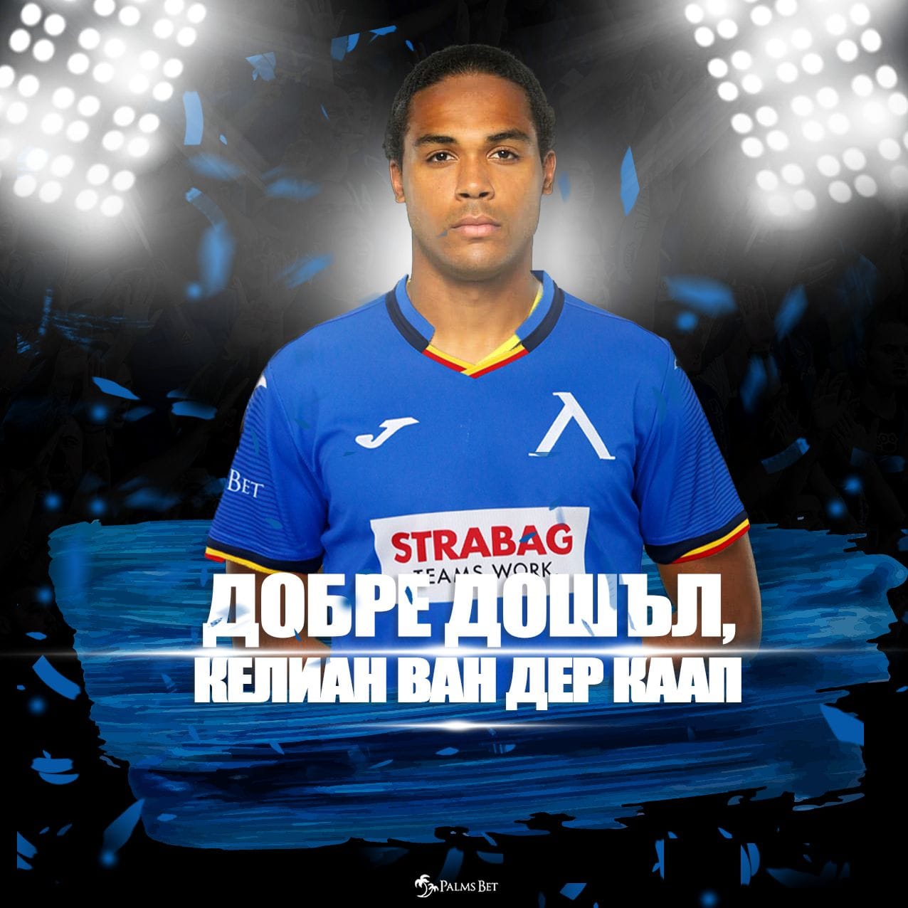 „ПФК Левски“ приветства с добре дошъл на „Герена“ Келиан ван дер Каап и му пожелава много щастливи мигове със синята фланелка“.